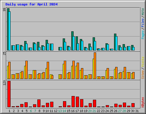 | Day | Hits | Files | Pages | Visits | Sites | KBytes | ||||||